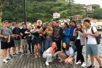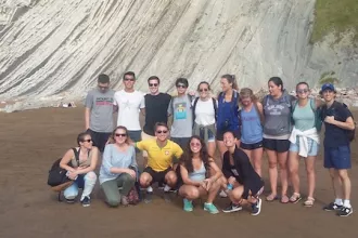 La escuela se encuentra en el barrio de Gros, una zona de moda y animada, a 5 minutos de la playa de surf de la Zurriola y a tan solo 20 minutos de la Parte Vieja. San Sebastián es una ciudad que impacta por su belleza y estilo de vida, es ideal para traer un grupo escolar para aprender español por los numerosos atractivos que ofrece, por su tamaño y por su seguridad.
